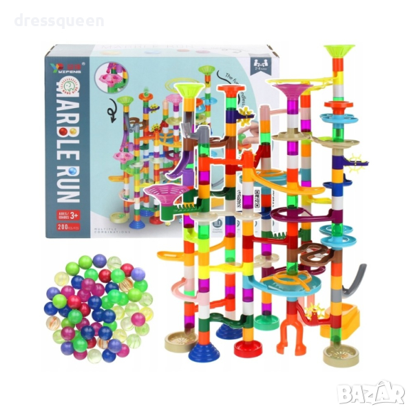 60 броя топчета - 30бр стъклени, 15бр светещи и 15бр пластмасови