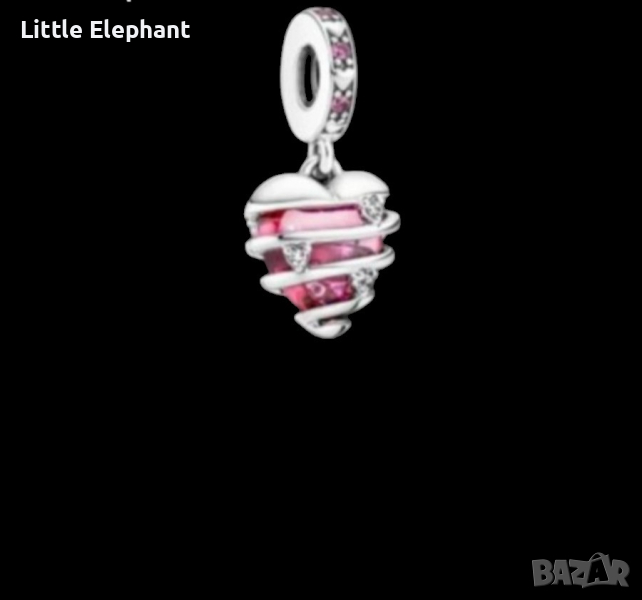 Сребърен висящ елемент Пандора сърце,колекция"Hearts",dark pink/ново → Обява 44616993