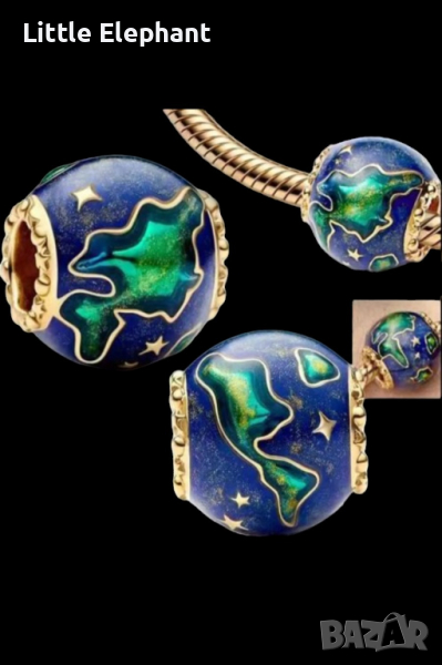 Сребърен елемент Пандора,"Cosmic planet Earth",Gold/нов → Обява 44617782