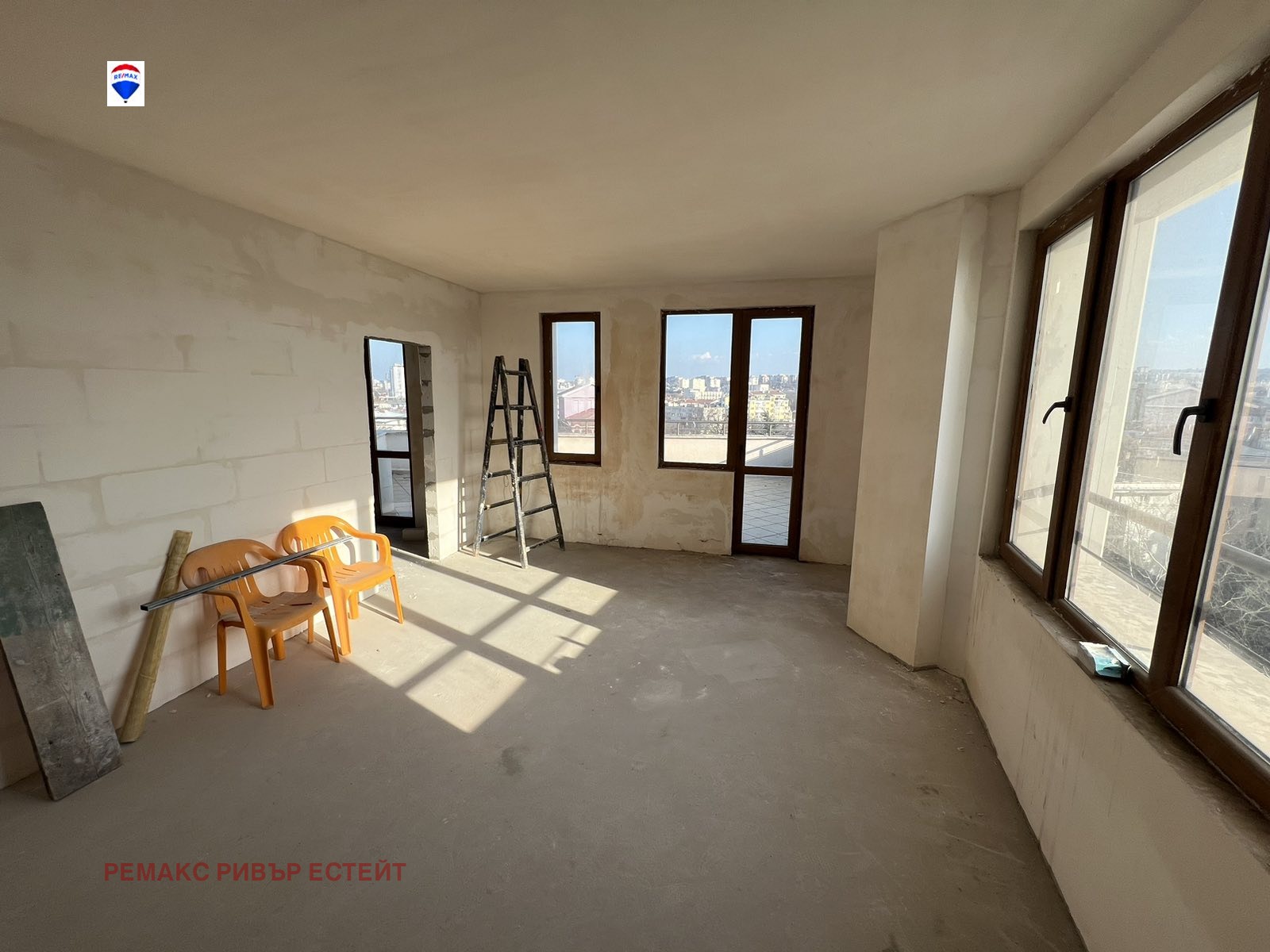 Помещението е изключистелно светло, изцяло с френски прозорци. В площ от 205кв.м. са разположени голяма зала, три отдедлни стаи, като една от тях е с преход, три отделни тоалетни и голяма открита тераса. Предлага се по БДС.