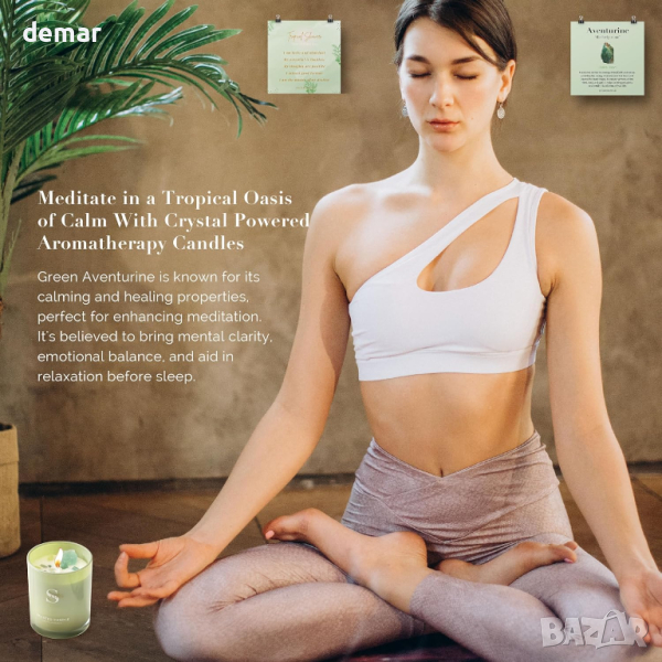 Този първокласен подаръчен комплект включва гривна от естествен кристал и камък от лава с етерични масла за ароматерапия, предназначени за ползи против тревожност. Гривната позволява дифузията на етерични масла като лавандула, насърчавайки релаксацията в движение. Това придружава луксозна свещ от 420 g Tropical Showers, напоена с кристали, изработена от естествен соев восък и напоена с авантюринов нефрит, цитрин и кристали от флуорит, предлагаща спокойна атмосфера с време на горене от 30-40 часа. Комплектът включва и нефритова уелнес гривна с истински нефрит и бели кристали, подсилена със сребърен талисман със сърце, съчетаващ елегантност със спокойствие. Перфектен като обмислен подарък, този комплект има за цел да впрегне кристална енергия за вътрешен мир, което го прави идеален подарък за внимателност за насърчаване на спокойствие и сила.