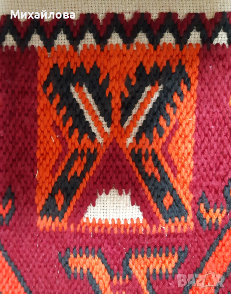 Размер външни 60/76, вътрешни 43/63. Панама, памучни конци, ръчна бродерия, български мотиви, две петна.