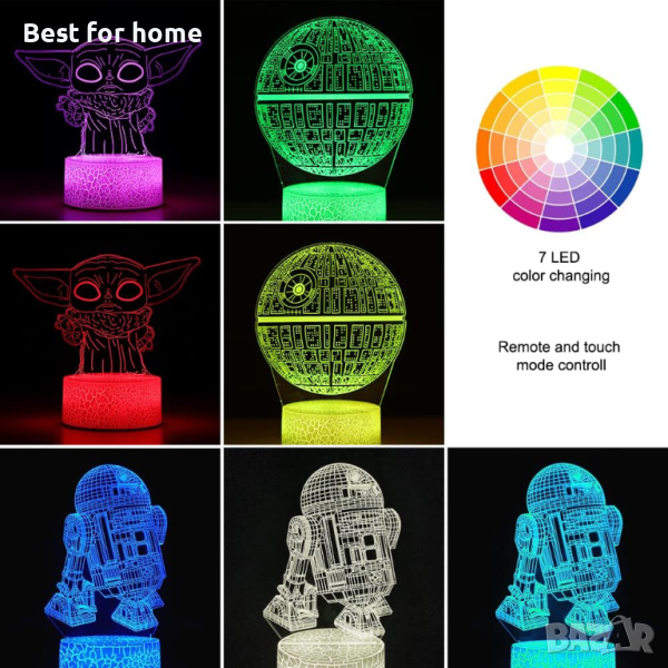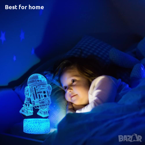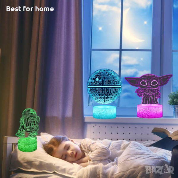 Декорация на нощна лампа Star Wars: Перфектна декоративна лампа за вашата спалня, всекидневна, офис и парти. 4 шарки, 1 напукана основа, 1 дистанционно управление, 1 ръководство за потребителя, 1 USB кабел. Не включва AA батерия.