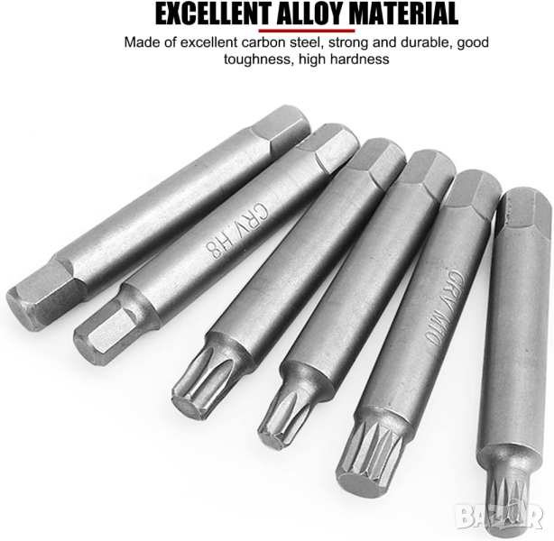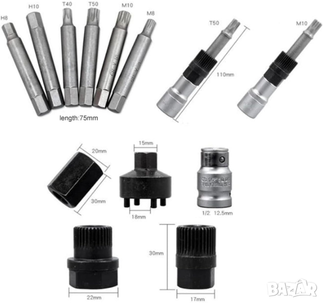 - Битове на вложка с фиксатор за шайбата на алтернатора T 50 и M 10;