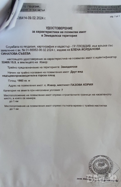 Парцел 1660 кв.м. село Извор, община "Родопи", Пловдивска област. → Обява 44622555