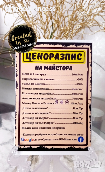🍀Табелки "Ценоразпис" за специални клиенти 😁