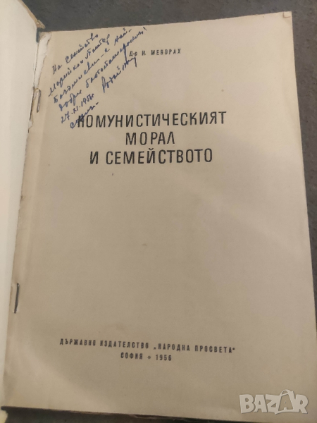 Комунистическият морал и семейството . Н. Меворахзабележки по кориците . чисто съдържание 1956 г156 стрС автограф , не мога да опреля от кого