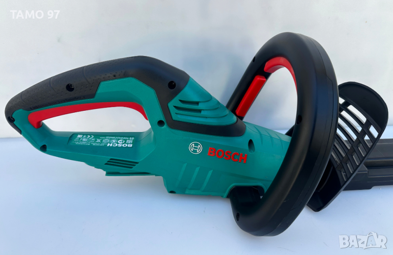 акумулаторен храсторез на Бош за жив плет в перфектно визуално състояние, също така работи отлично и почти без следи от използването, оригинално унгарско производство внос от Франция. Обявената цена е за само машината без батерия и зарядно. При желание на клиента може да се окомплектова с една батерия и зарядно и цената ще е 180лв.