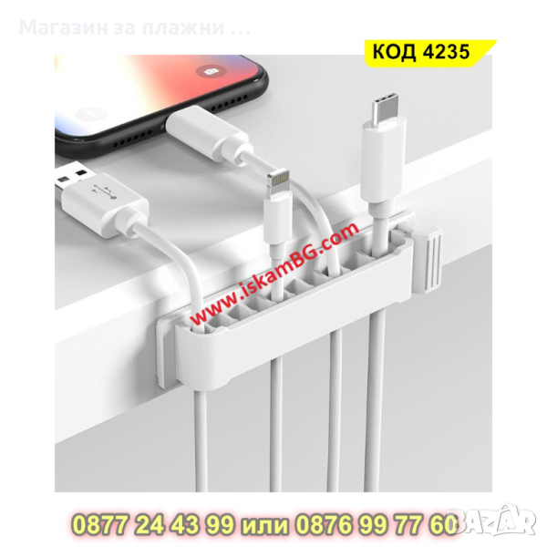 Щипка органайзер за кабели с 8 канала - самозалепваща се - 1 брой, БЯЛ - КОД 4232
