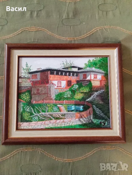 картина върху рамка с ленено платно с акрилни бои . В действителност картината е страхотна. Снимката малко изкривява цветовете.