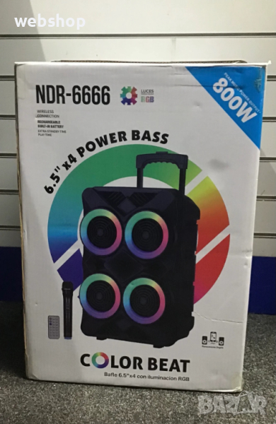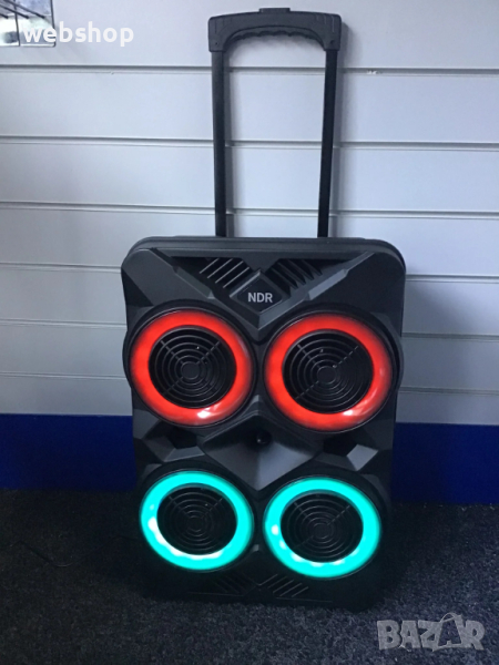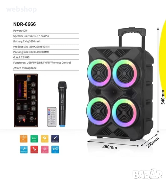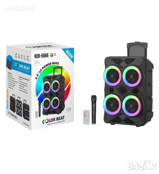 Преносимият купон е тук - почувствайте го с ефектната преносима тонколона с 4х6,5 инчови говорители, микрофон и светлинни ефекти !