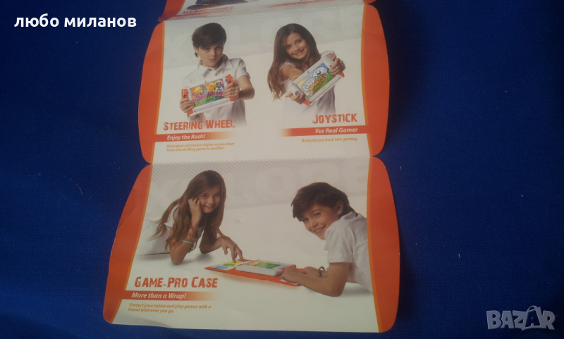 развитието му и да бъде лишено от необятната полезна информация в същия интернет. Този таблет е точно такъв. Има електронна книга, ютюб, интернет браузър, камера, игри, снимки, филмчета и т.н. Собствената му памет е малка 500 мг, но има слот за карта, която чете до 64 гига. По принцип има интересни допълнителни приложения, които могат да се поръчат от сайта – пиано, барабани, джойстик, глобус и т.н. Филми се гледат без да насичат. Има и една забележка. Таблета е привързан към акаунт за родителски контрол, а той за съжаление безвъзвратно е загубен. Докато не се смени не може да влиза в интернет. Предполагам хакер
