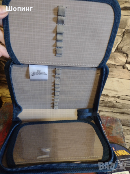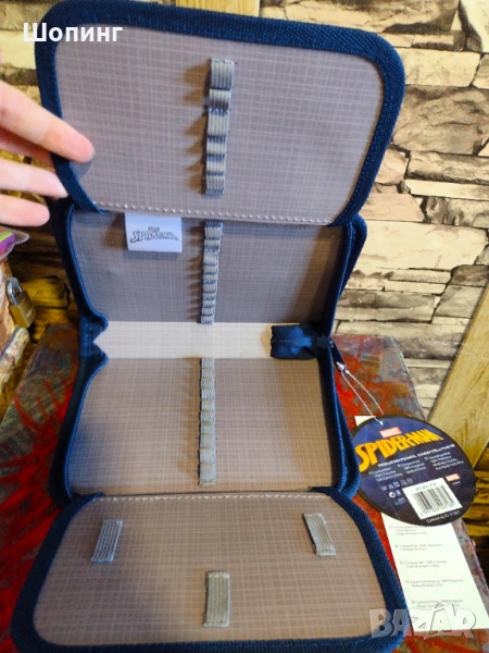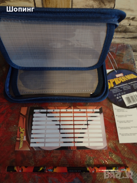 - Несесер с аксесоари SPIDERMAN - оригинален, с лиценз и всички етикети. Несесер за училище с 3D изображение на Спайдърмен с един цип, разгъва се на четири части с 6 отделения. Наситен печат и от двете страни, здрава непромокаема материя. Затворен - 20 см.