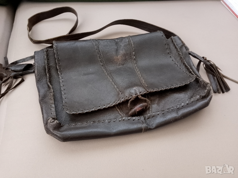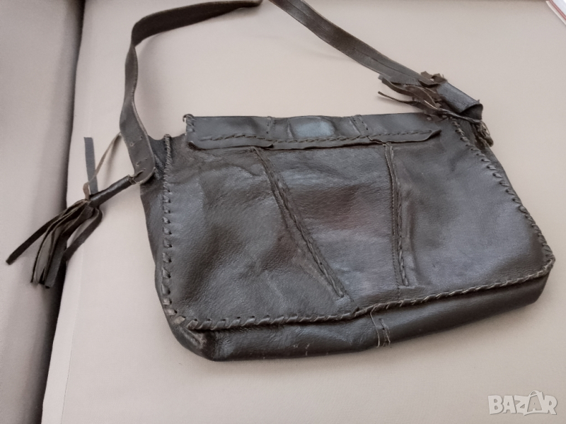 Подарък още една чанта от естествена кожа, тъмнокафява, която има едно голямо пространство и един вътрешен джоб.Размерите й са 30/20/6 см.
