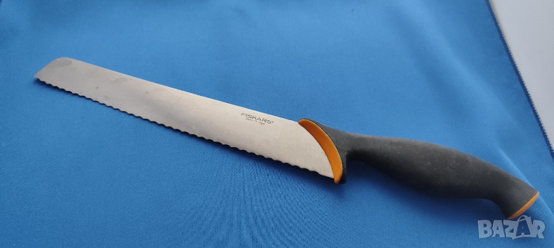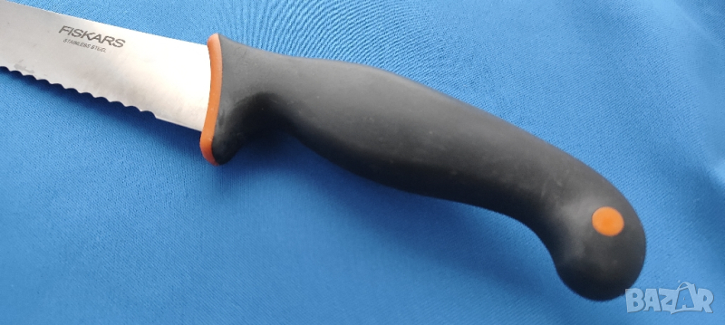 5. FISKARS Stailess Steel - Домакински, кухненски серетиран нож за хляб, големи плодове и зеленчуци.