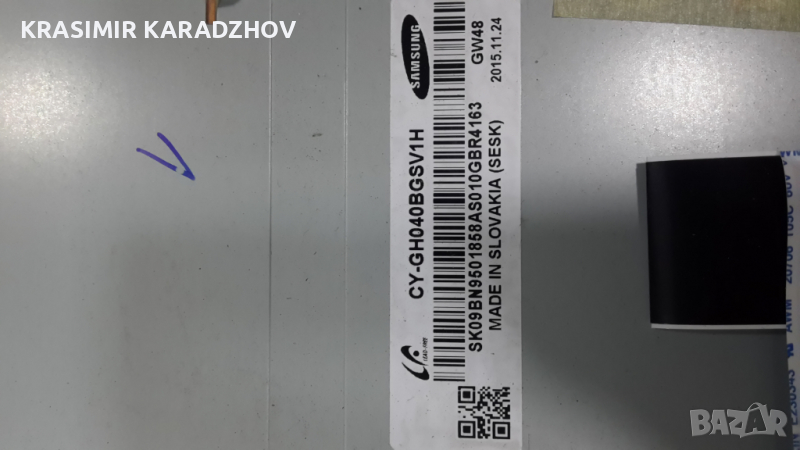 Панел CY-GH040BGSV1H счупена матрица : подсветка в комлект с тавата --------60.00лв (забележка:трябва да се смени най-горното фолио ) : майн борд BN41-02098B BN94-08119C -----80.00лв : захранващ борд BN44-00703A ------ 50.00лв : T-con RUNTK 5538TP ZA 56E02 -------50.00лв : високоговорители комплект ---20.00лв : IR приемник + power бутон ------20.00лв : лентов кабел ------10.00лв : стойка оригинал ------ 30.00лв . От днес 10 % намаление