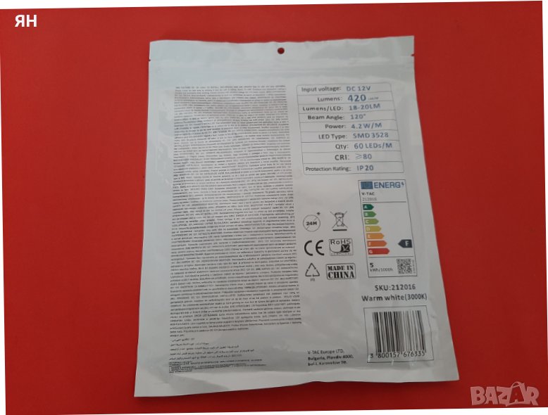 Led Лента V-TAC-4.2W/m,12V,3000K,420lm