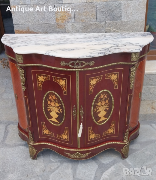 Старинен Комод 1950/60г.Масивна изработка дърво с фурнир и интарзии,бронзов обков и мраморен плот 107 на 41см с височина 97см.Перфектен!