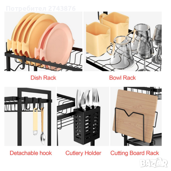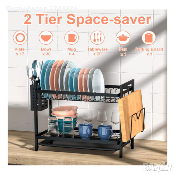 Двустепенен метален сушилник за съдове,