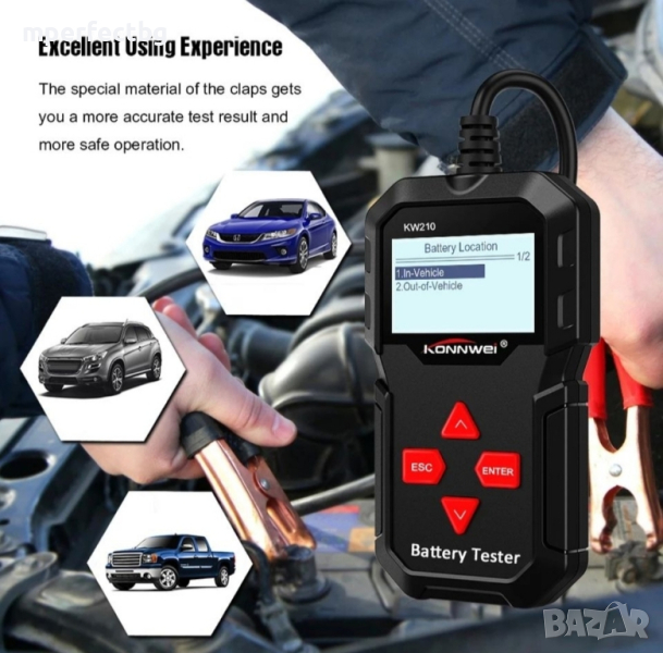 Тестер за акумулатор Konnwei 210 товарна вилка проверка на акумулатор тест акумулатор → Обява 44640889