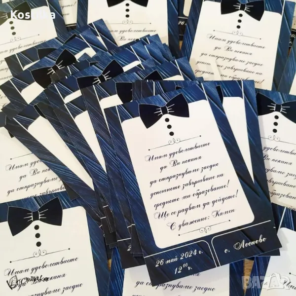 Размери на поканите – 10 cm х 15 cm. Цената е 2,50 лв./бр.