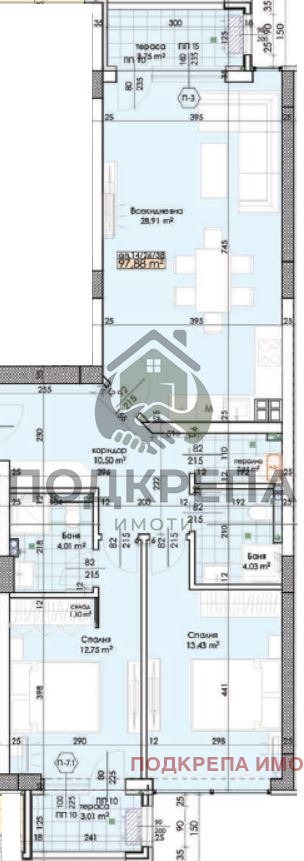 Подкрепа Имоти предлага тристаен апартамент в един от най-предпочитаните квартали, а именно ж.к. Тракия. Имотът е с площ от 116 кв.м. Намира се на 9-ти непоследен етаж в новоизграждащ се затворен жилищен комплекс, награден с 1-во място в категория ,,Луксозен Пространствен Дизайн'. Жилището има следното разпределение: функционално входно антре, две просторни спални с бани и тоалетни, голяма всекидневна, две тераси и склад. Изложенията са югоизток-северозапад. Сградата е пред акт 14. Комплексът разполага с озеленено дворно място за отдих, модерни детски площадки и стрийт фитнес. Луксозни общи части с контролиран достъп, както и жива охрана и видеонаблюдение 24/7, за комфорт и спокойствие на живущите в комплекса. Комплексът разполага с подземни паркоместа и гаражи.