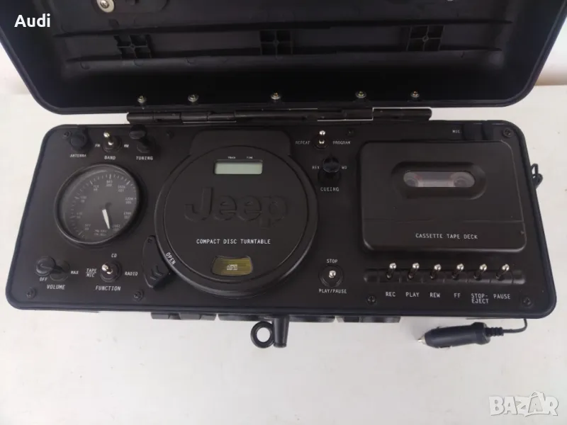 Радио-касетофон и диск на фирмата Roadstar, изработено по поръчка за автомобилната компания Jeep.