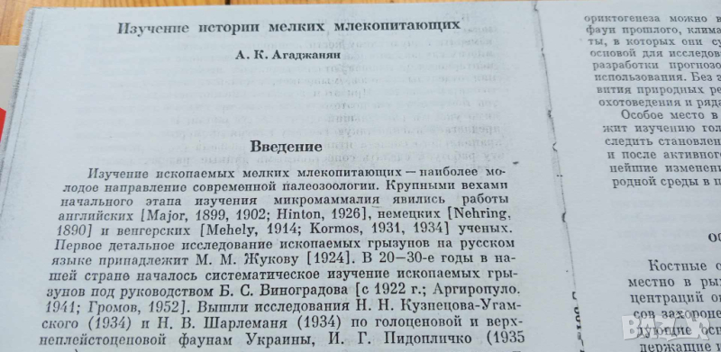 Изучение истории мелких млекопитающих - К.А. Агаданян - книгата е на руски език и съдържа 189 страници. Включва: