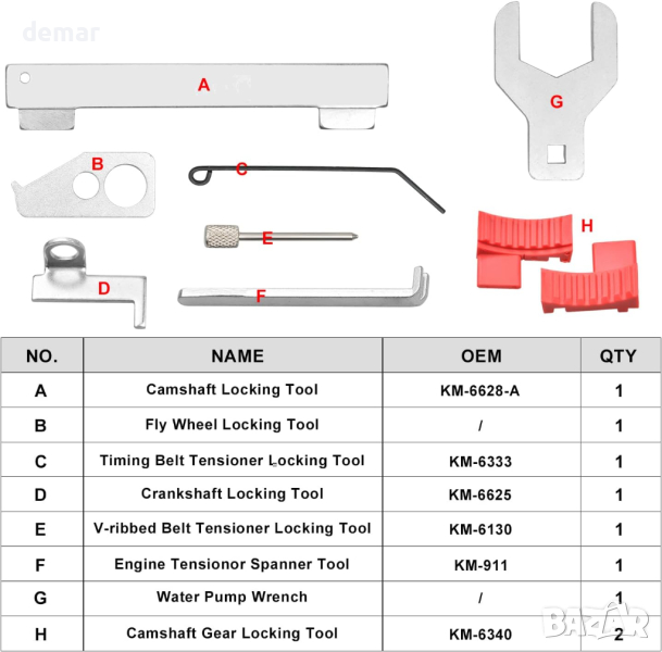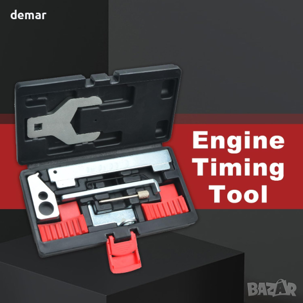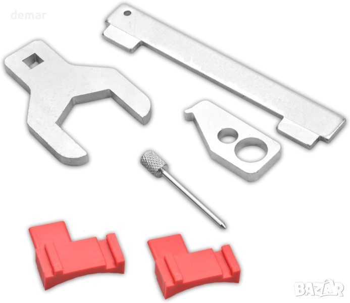 Комплект инструменти за синхронизация на разпределителния вал, предназначен за прецизно подравняване и лесна употреба по време на поддръжка на системата за синхронизация на двигателя. Този цялостен комплект включва плоча за настройка на разпределителния вал, маховик и инструменти за заключване на зъбното колело на разпределителния вал, заедно със заключващи щифтове на ангренажния ремък и спомагателния обтегач на ремъка. Освен това разполага с ключ за обтягане на двигателя и 41 mm ключ за водна помпа за удобно регулиране на водната помпа по време на обслужване на ангренажния ремък. Съвместим с широка гама от 2003 до 2015 Alfa Romeo, Chevrolet, Fiat, Opel / Vauxhall и Saab 1.4, 1.6 и 1.8 L двигатели, този OEM еквивалентен комплект инструменти гарантира качествена изработка с тежки материали като първокласна въглеродна стомана с цинково покритие и покритие от черен оксид, както и алуминиева сплав за превъзходна устойчивост на износване и корозия, гарантиращи гъвкаво обслужване за вашите нужди от поддръжка на двигателя.