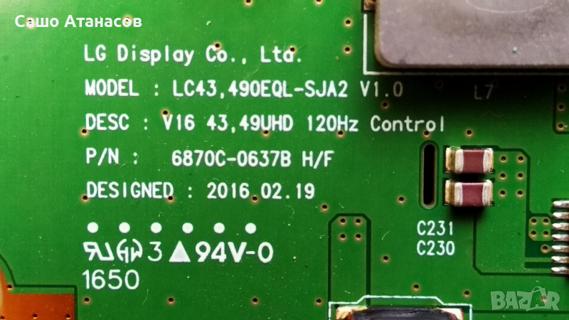 T-Con Board: LC43,490EQL-SJA2 V0.1 / 6870C-0637B H/F / 6871L-4559E - 70лв.