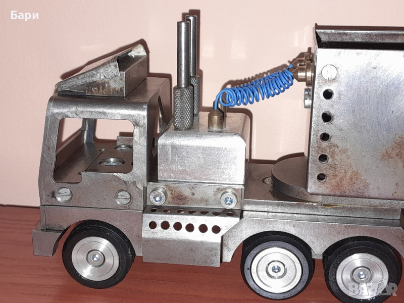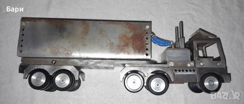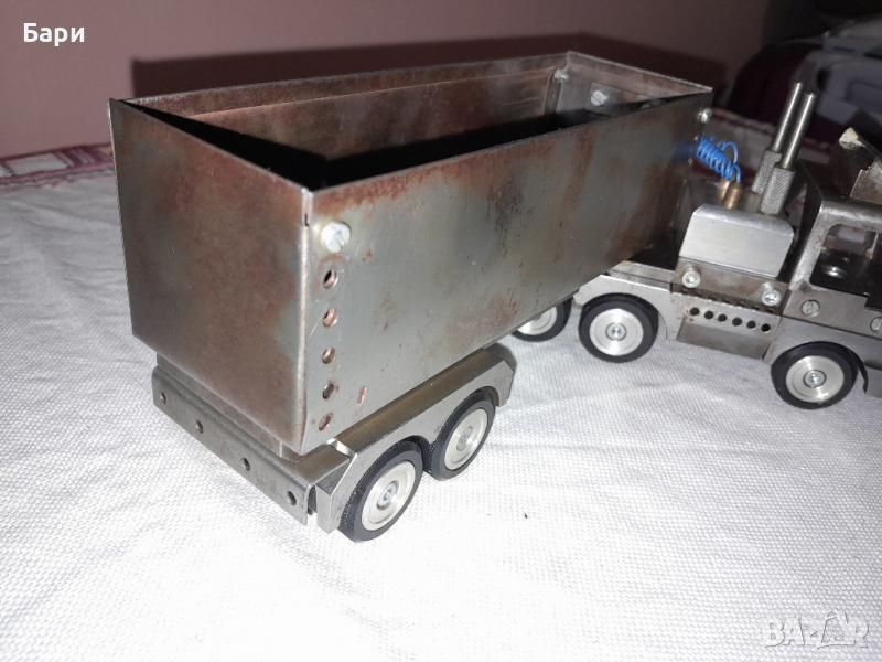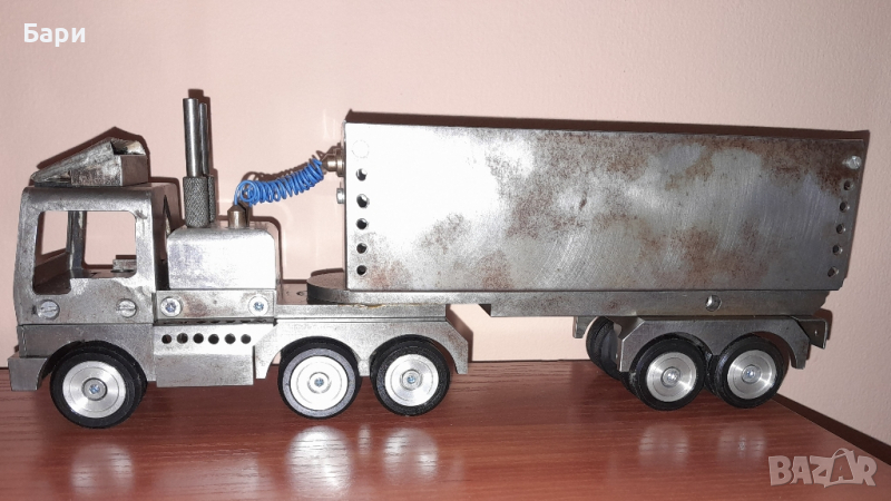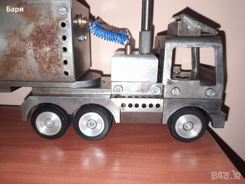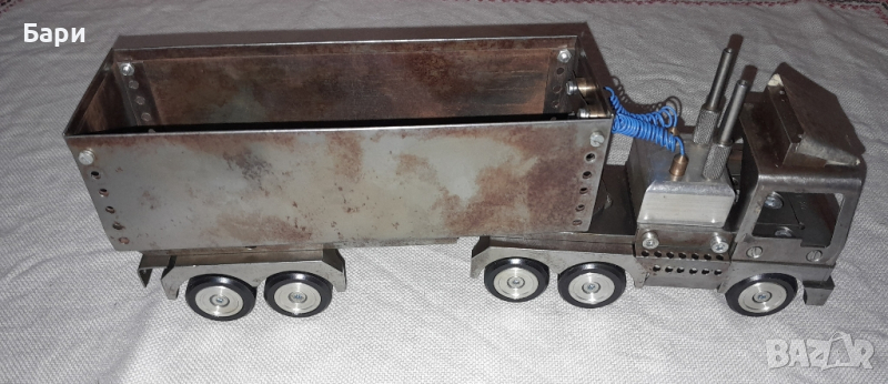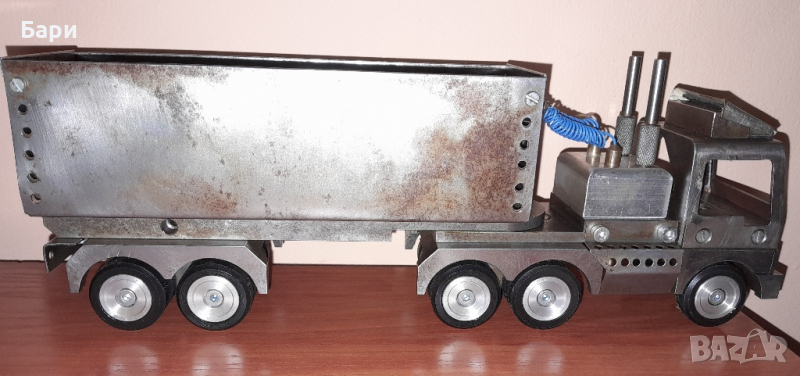 Продавам ръчно изработен метален камион ,от стомана, месинг и алуминий с дължина 30см, тегло 2,4кг.