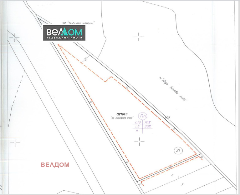 Агенция ВЕЛДОМ продава парцел с площ 13718 м2 в с. Слънчево, на 15 км. от Варна. Парцелът е с утвърден ПУП-ПЗ в урбанизирана територия със смесено предназначение, с начин на трайно ползване за складова база . Има РАЗРЕШЕНИЕ ЗА СТРОЕЖ на склад за пакетирани стоки 100 м2. Парцелът е водоснабден и електроснабден.