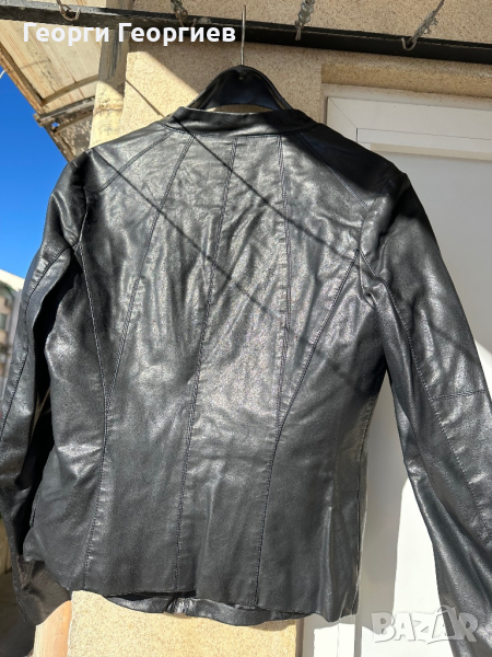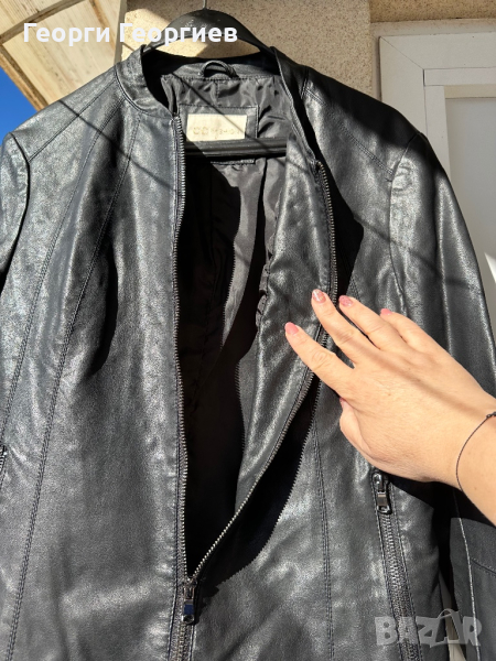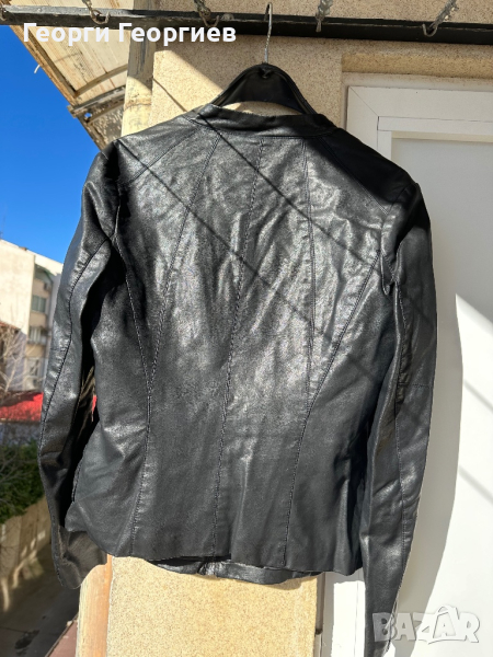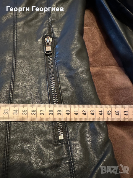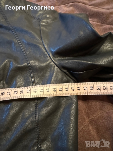 Якето е от изкуствена кожа, обличано е два три пъти, като ново е. Точни размери има в снимките.