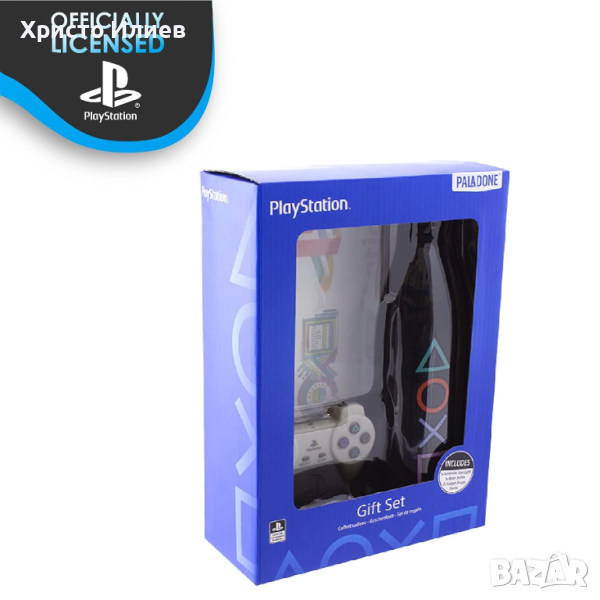 Подаръчен комплект PlayStation Часовник Бутилка Лампа Стикери Лицензиран Paladone
