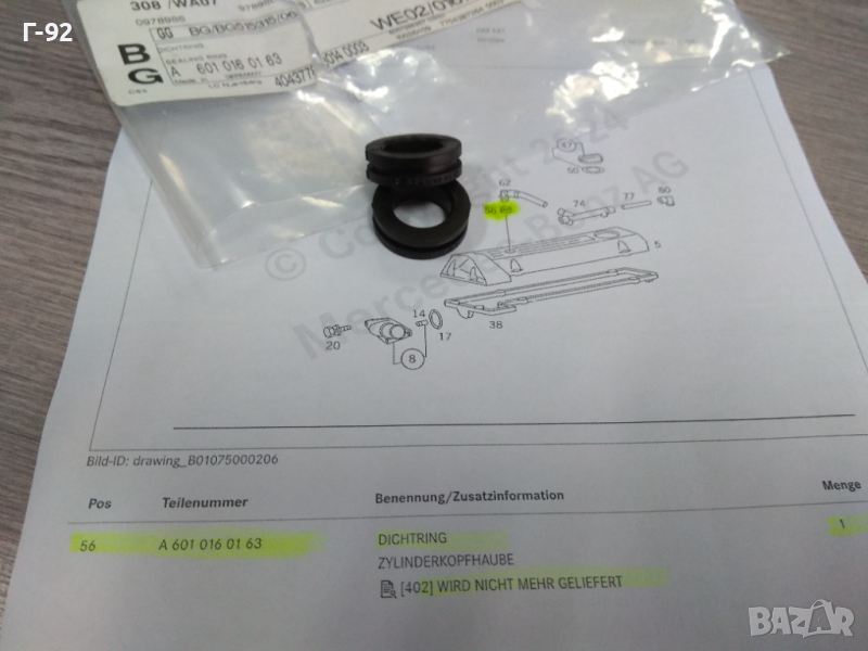 A6010160163**NEU**MERCEDES-BENZ**ОМ601-602-603-661-662**УПЛЪТНЕНИЕ ЗА ВЕНТИЛАЦИЯ НА ДВИГАТЕЛЯ**