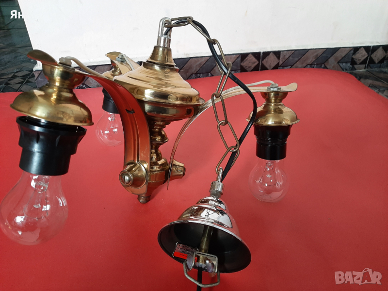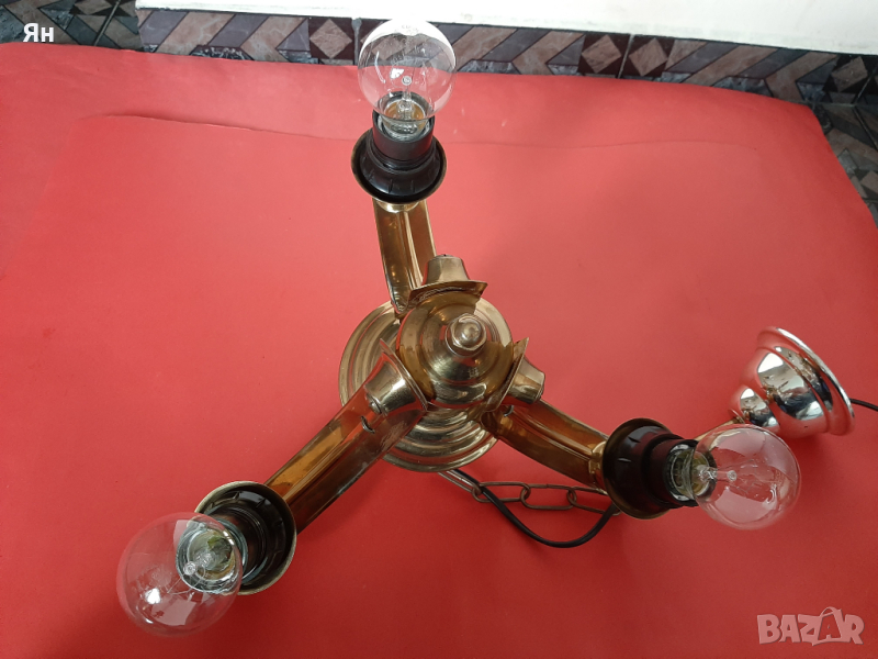 Стар Ретро Полилей Лампа от Бронз с 3 крушки