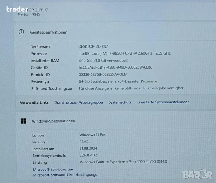 Dell Precision 7540 , Intel i7-9850H, RAM: 32 GB, 500GB SSD- като нов ! → Обява 44652774