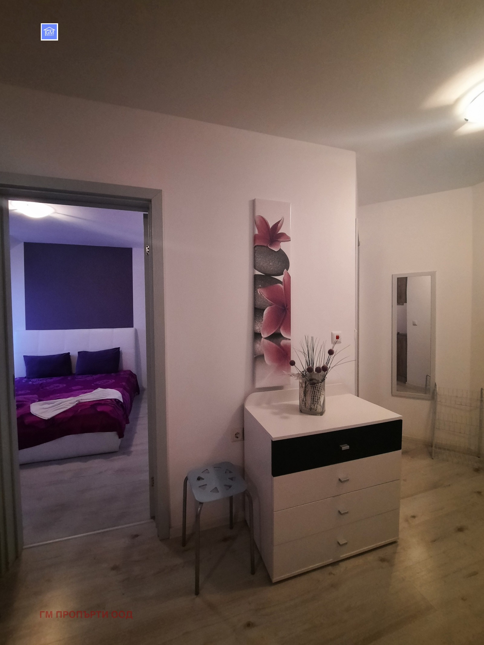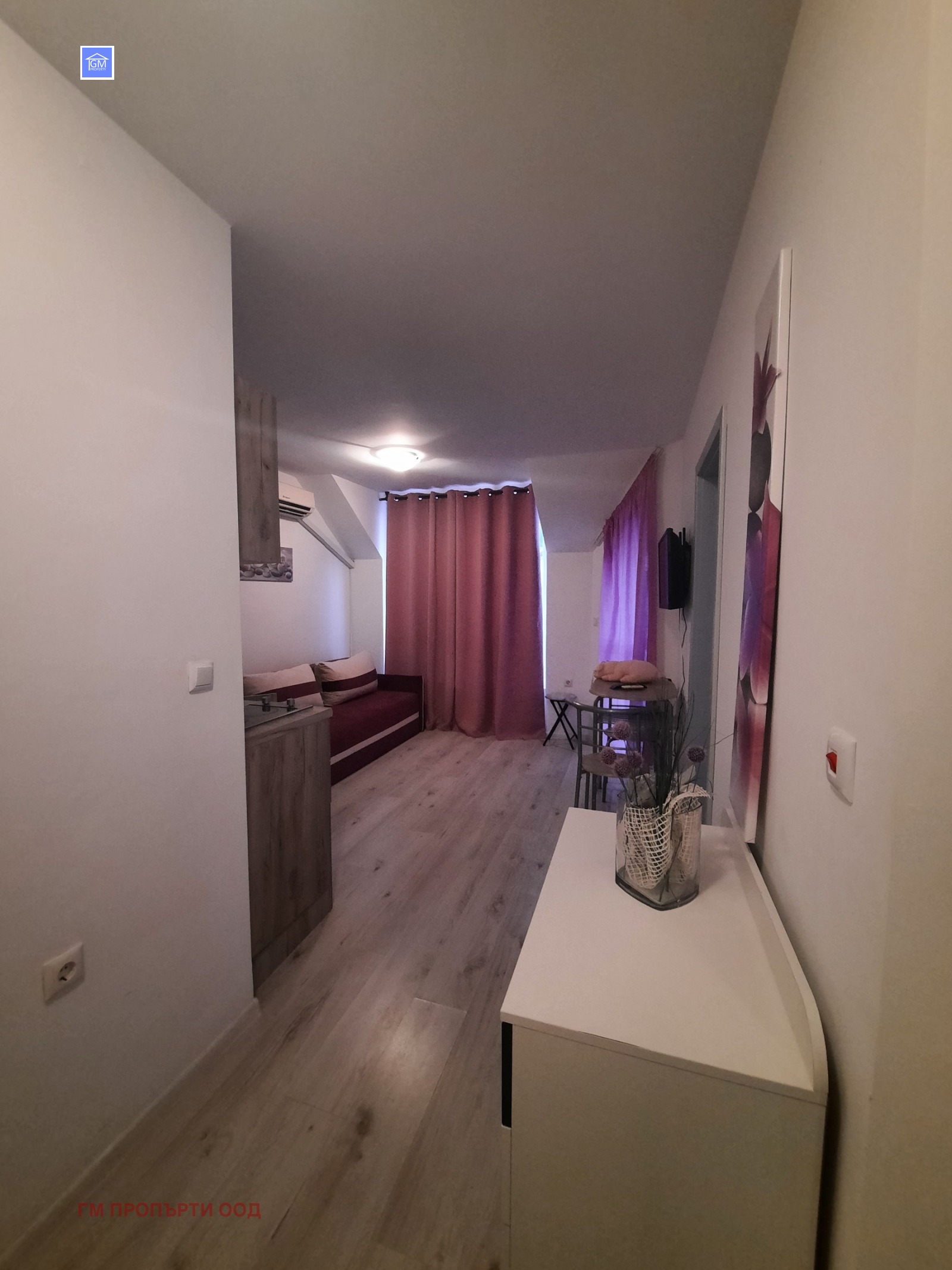 Имота е разпределен: всекидневна с кухненски кът, спалня, баня с тоалет и тераса.