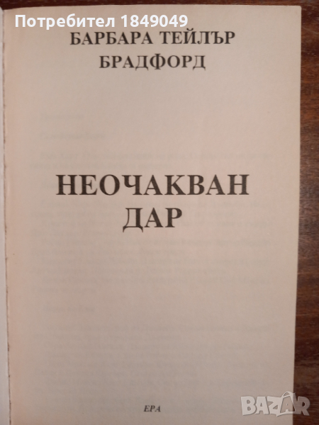 Барбара Тейлър Брадфорд "Неочакван дар" - 10 лв./2008г.,меки корици/.