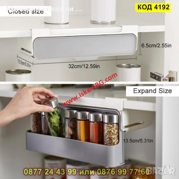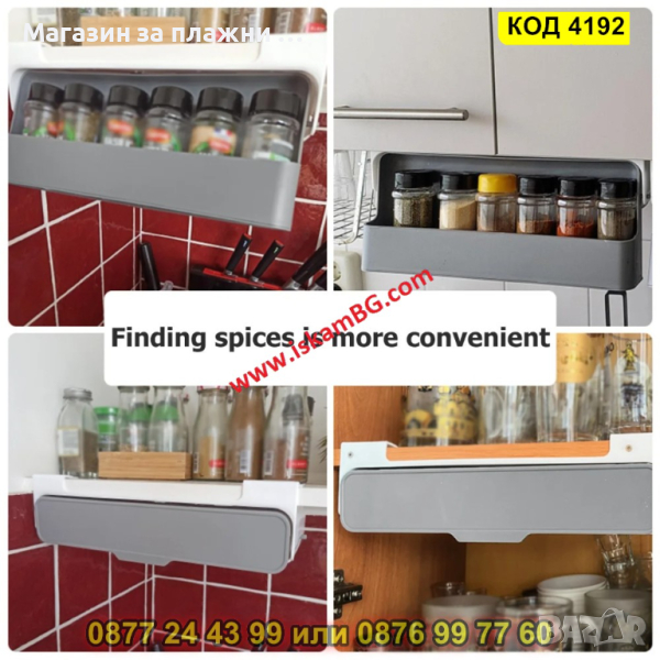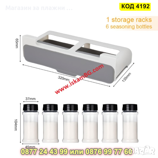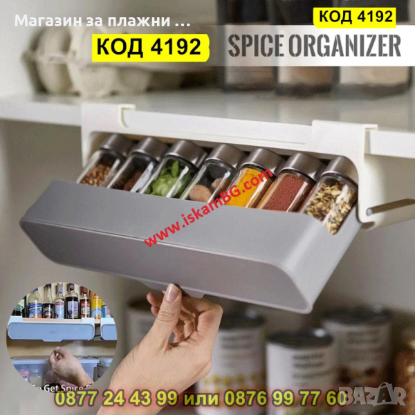 Органайзер поставка за подправки с 6 броя бурканчета за - КОД 4192 под шкаф - КОД