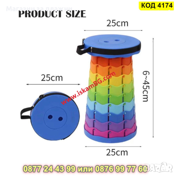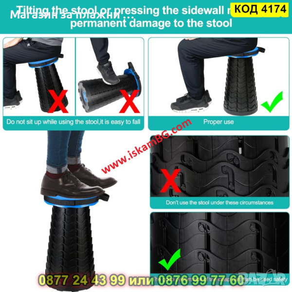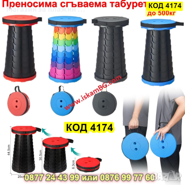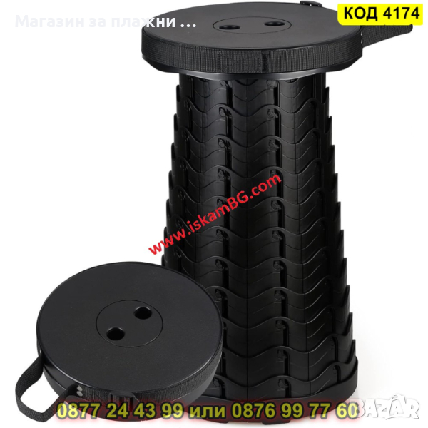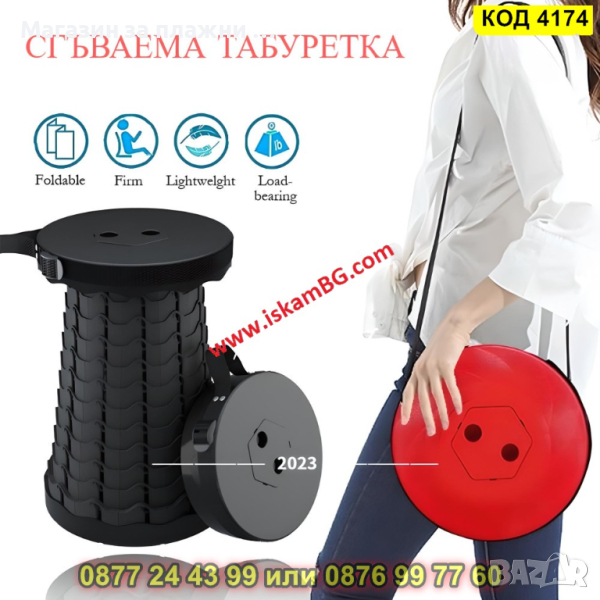 Сгъваемата, преносима и здрава табуретка е перфектното оборудване за къмпинг, риболов, излет или като допълнителна седалка край огъня.