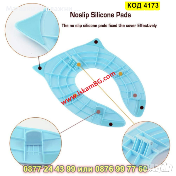 Сгъваемият редуктор седалка за тоалетна чиния със забавен дизайн на бухалче е идеалният спътник при пътуване , защото елиминира страха на вашето дете от използване на странни тоалетни. Затворената хигиенна чанта я прави лесна за носене със себе си на пътувания и се побира във всяка чанта или раница. Снабден с 4 неплъзгащи се фиксиращи блока на дъното, адаптера може да се прикрепи към всяка тоалетна чиния и също така осигурява безопасност и комфорт със своята нехлъзгаща се гумена повърхност. Освен това се почиства лесно със сапун и вода.