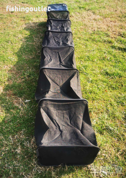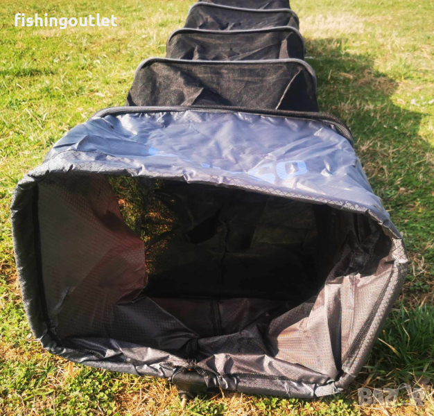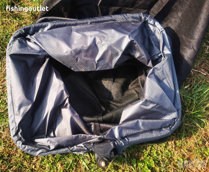 Изцяло изработен от мека и здрава бързосъхнеща материя (micromesh) шарански живарник , отличаващ се с елегантен дизайн. Снабден с религулируем накрайник за колче и куки за поставяне на тежест за стабилизиране.
