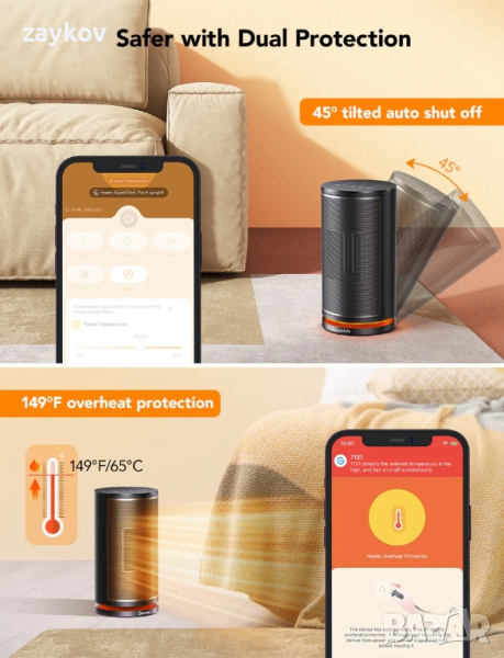 GoveeLife Smart Portable Space Heater. С функции като 4 режима на отопление и вграден сензор, вашият нагревател винаги ще бъде на точната температура, която желаете.