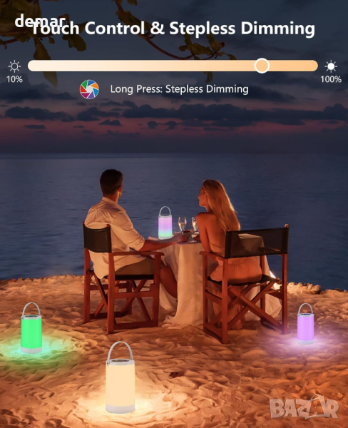 Нощна лампа Hensam, LED сензорна с 4 режима, топло бяло и RGB, акумулаторна