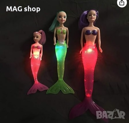 ПРОМО! Светеща кукла Русалка със светеща опашка 2 размера ЦВЕТОВЕ