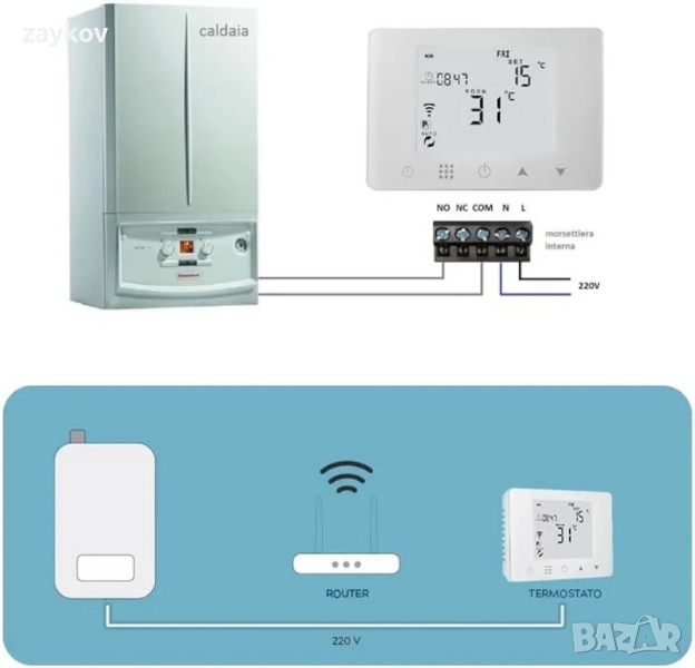 С електронния микропроцесорен термостат Homcloud можете да наблюдавате настройката на отоплението и температурата благодарение на дисплея, който е много лесен за четене. Хронотермостатът може да се свърже с безплатно приложение или с Amazon Alexa и Google Assistant за гласово управление и дистанционно управление