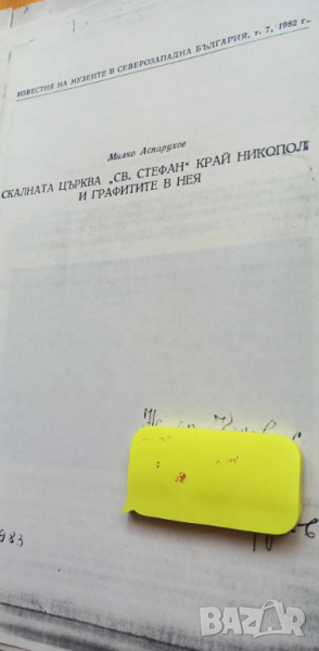 1. Скалната църква "Свети Стефан" край Никопол и графитите в нея - М.Аспарухов /Известия на музеите в Северозападна България, т.7, 1982 г./