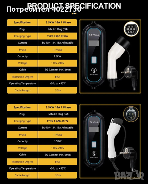 Зарядна Станция за Електромобили, TYPE 2, 3.5 kW, снимка 1 - Аксесоари и консумативи - 44662324  Зарядна Станция за Електромобили, TYPE 2, 3.5 kW, снимка 2 - Аксесоари и консумативи - 44662324  Зарядна Станция за Електромобили, TYPE 2, 3.5 kW, снимка 3 - Аксесоари и консумативи - 44662324  Зарядна Станция за Електромобили, TYPE 2, 3.5 kW, снимка 4 - Аксесоари и консумативи - 44662324  Зарядна Станция за Електромобили, TYPE 2, 3.5 kW, снимка 5 - Аксесоари и консумативи - 44662324  Зарядна Станция за Електромобили, TYPE 2, 3.5 kW, снимка 6 - Аксесоари и консумативи - 44662324  Зарядна Станция за Електромобили, TYPE 2, 3.5 kW, снимка 7 - Аксесоари и консумативи - 44662324  Зарядна Станция за Електромобили, TYPE 2, 3.5 kW, снимка 8 - Аксесоари и консумативи - 44662324  Зарядна Станция за Електромобили, TYPE 2, 3.5 kW, снимка 9 - Аксесоари и консумативи - 44662324  Зарядна Станция за Електромобили, TYPE 2, 3.5 kW, снимка 10 - Аксесоари и консумативи - 44662324  Зарядна Станция за Електромобили, TYPE 2, 3.5 kW, снимка 11 - Аксесоари и консумативи - 44662324  Зарядна Станция за Електромобили, TYPE 2, 3.5 kW, снимка 12 - Аксесоари и консумативи - 44662324  Зарядна Станция за Електромобили, TYPE 2, 3.5 kW, снимка 13 - Аксесоари и консумативи - 44662324 1/13