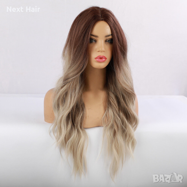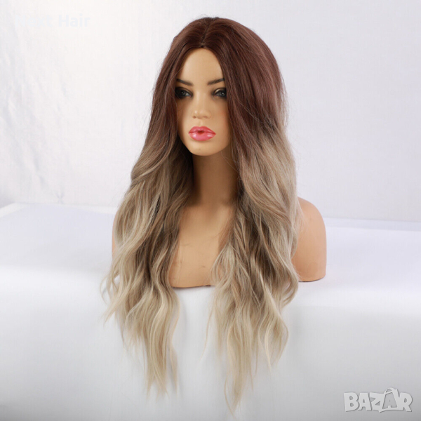 Висококачествена омбре перука на път два цвята кафяво рус → Обява 44664341